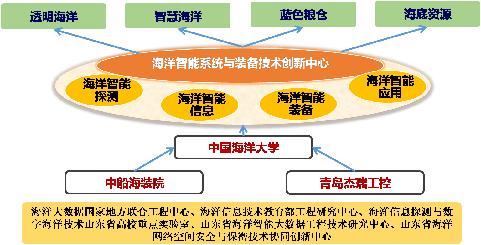 “山东省海洋智能系统与装备技术创新中心”(以下称技术创新中心)于2021年1月由山东省科学技术厅批复筹建。该技术创新中心以AV在线看 为主体,联合中船海洋装备研究院和青岛杰瑞工控技术有限公司,整合海洋大数据国家地方联合工程研究中心、海洋信息技术教育部工程研究中心、海洋信息探测与数字海洋技术山东省高校重点实验室等8个省部级工程中心和实验室力量,充分发挥在海洋智能系统及装备领域基础研究、技术创新、人才培养、科研投入、产业化等方面优势,围绕海洋智能探测、海洋智能信息、海洋智能装备、智能海洋应用四个重点研究方向,推动重大科技成果在海洋科学研究、海洋探测技术研发、海洋信息技术开发、海洋环境监测、海洋资源保护、海洋工程技术开发及相关领域转化。技术创新中心的主要研究方向具体包括: