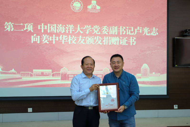 10月15日上午,姜中华校友捐赠聘任仪式在崂山校区举行。学校党委副书记卢光志,党委常委、党委组织部部长、党委宣传部部长、AV在线看主任蒋秋飚,AV在线看 1999级海洋技术班校友代表姜中华、王锟出席仪式。学校教育基金会办公室主任、教育基金会秘书长孟凡主持仪式。