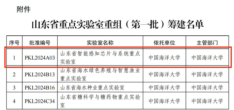 近日,山东省科学技术厅发布了《关于批准山东省重点实验室(第一批)筹建的通知》,批准第一批139家山东省重点实验室开展筹建工作,由AV在线看 牵头,联合中国科学院微电子研究所、青岛海尔智能技术研发有限公司共同申报的“山东省智能感知芯片与系统重点实验室”位列其中。