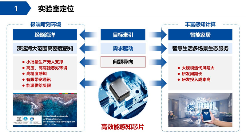 未来,实验室将围绕现代海洋和智能家居两个产业融合发展,将海洋产业的高投入、高可靠性、高性能、低产出和家居产业的规模效应相结合,打造拥有完全自主知识产权的高效能感存算一体融合芯片开发设计工具、体系架构、生产工艺链条。