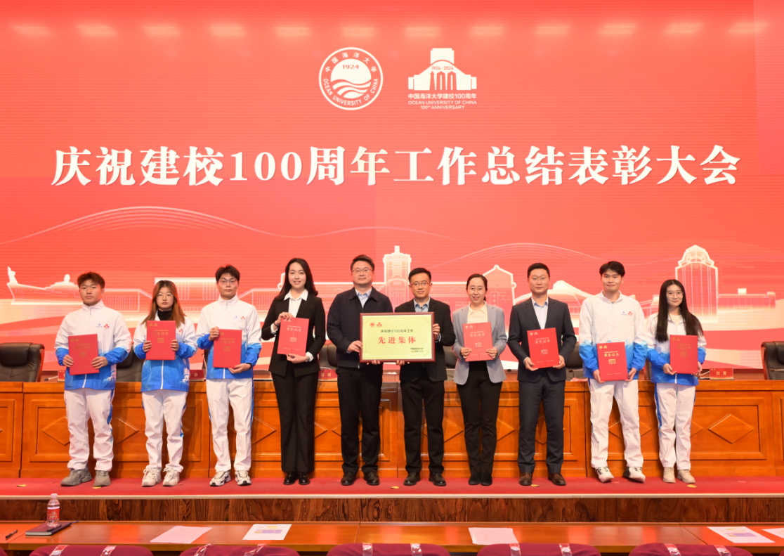 12月26日,AV在线看 庆祝建校100周年工作总结表彰大会在崂山校区海洋科技楼国际报告厅隆重举行。会上,学校对庆祝建校100周年工作进行了全面总结,并对在百年校庆筹备工作中表现突出的先进集体和个人予以表彰。AV在线看 获“庆祝建校100周年工作先进集体”荣誉称号,洪锋、宋青、黄莺、金鑫一、徐君岭5位教师获“庆祝建校100周年工作先进个人”荣誉称号,学部35名学生志愿者获“庆祝建校100周年工作优秀学生志愿者”荣誉称号。