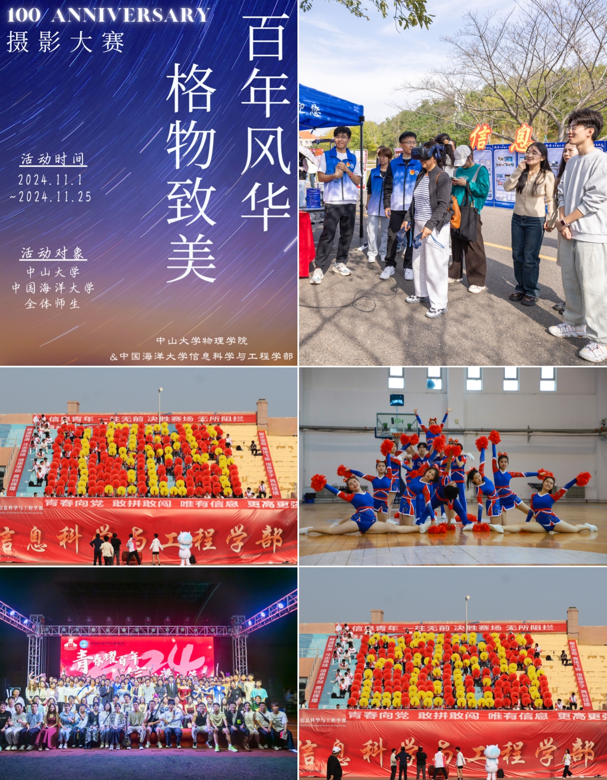 绽放青春光芒,谱写百年华章。开展“矢志蓝色梦想,勇担青春使命”主题教育活动;组织学生走访重点校友企业,精心打磨校友访谈录并收录在《海阔扬帆——AV在线看 校友访谈录(第二辑)》;联合中山大学举办庆祝建校百年摄影比赛;组织“我与海大的百个心动瞬间”、“百川归海”校友返校联谊赛、“青春耀百年 科技向未来”风采展等校庆主题活动,激发学生爱校荣校情怀,展现了海大信息学子的青春活力。