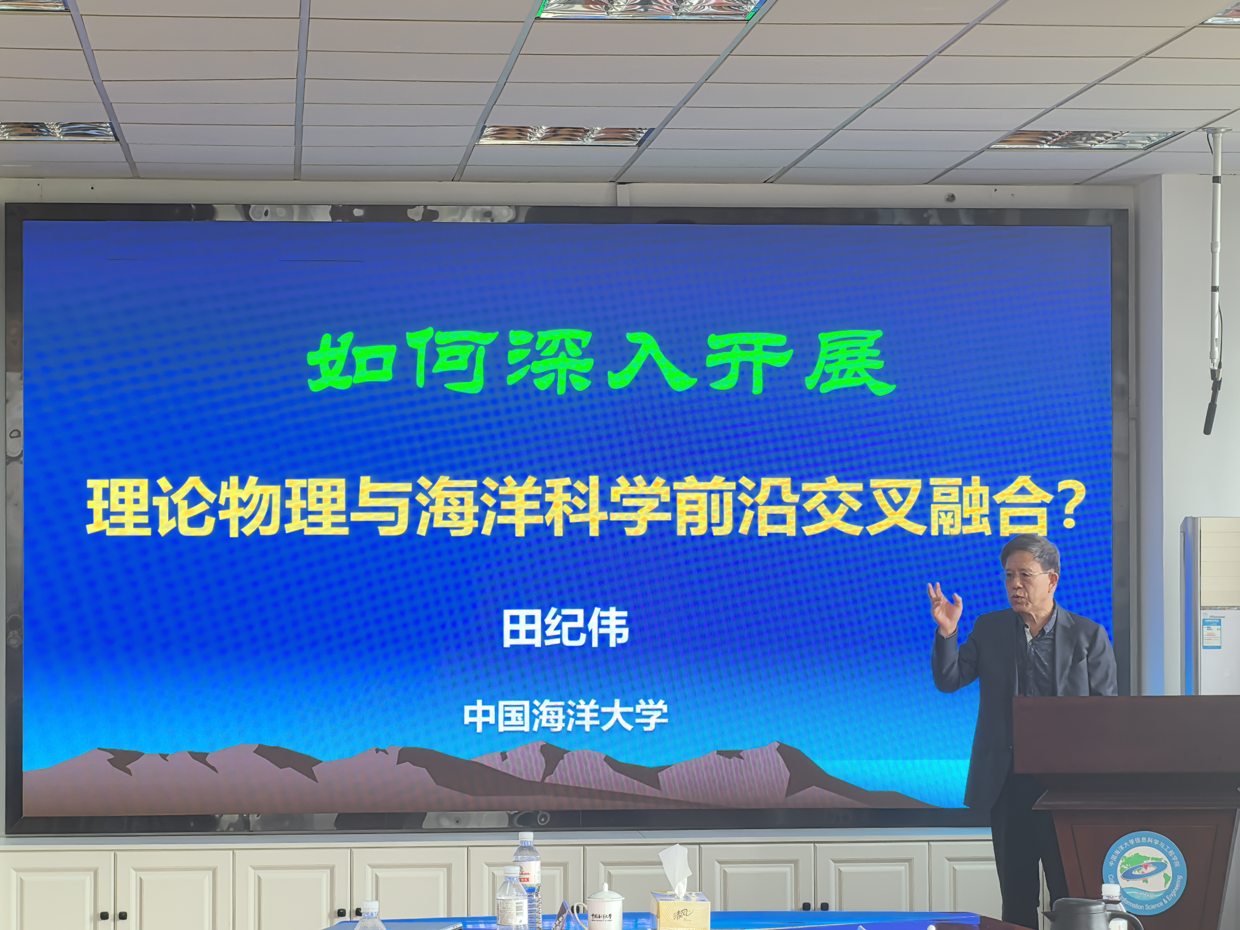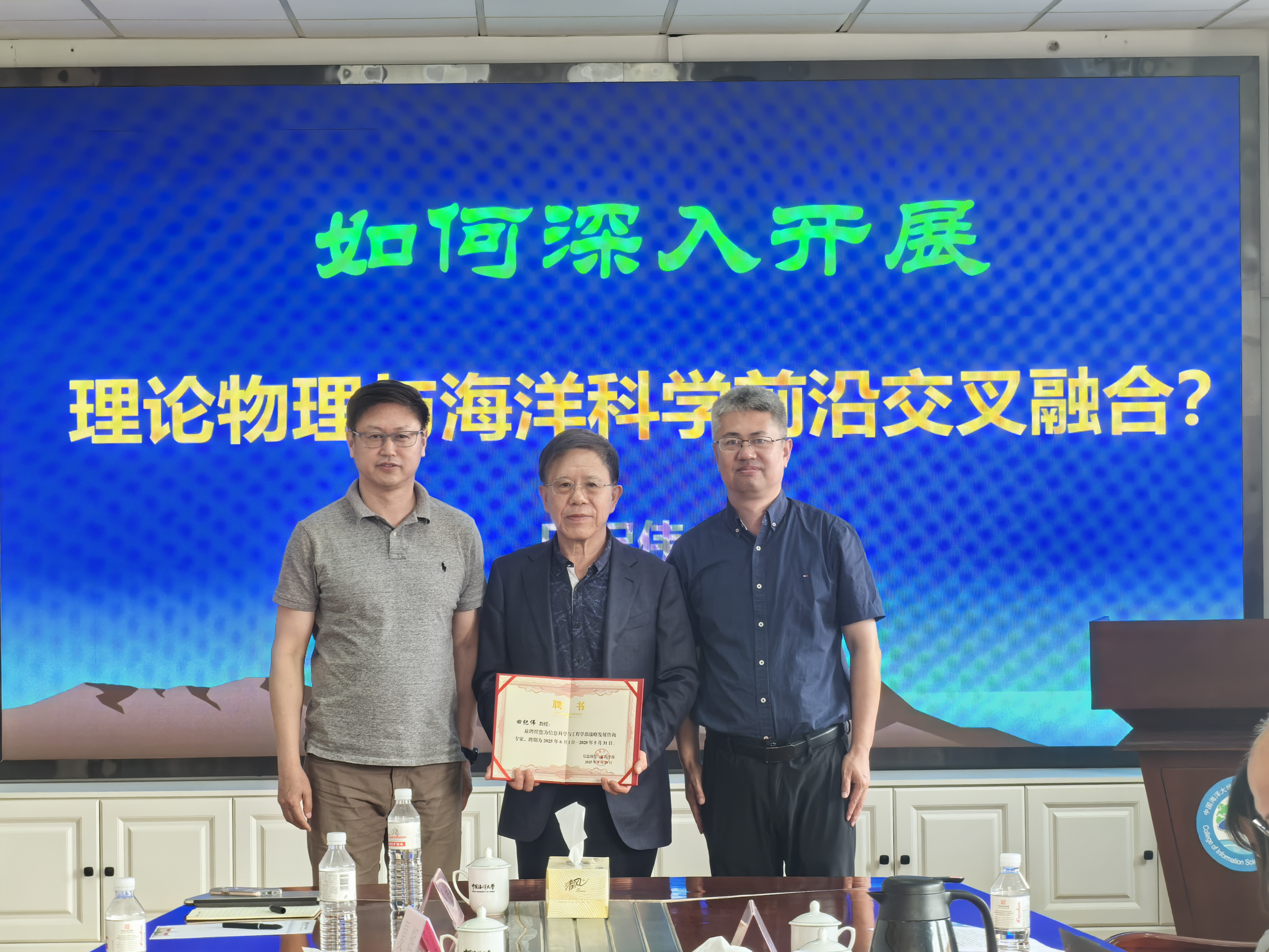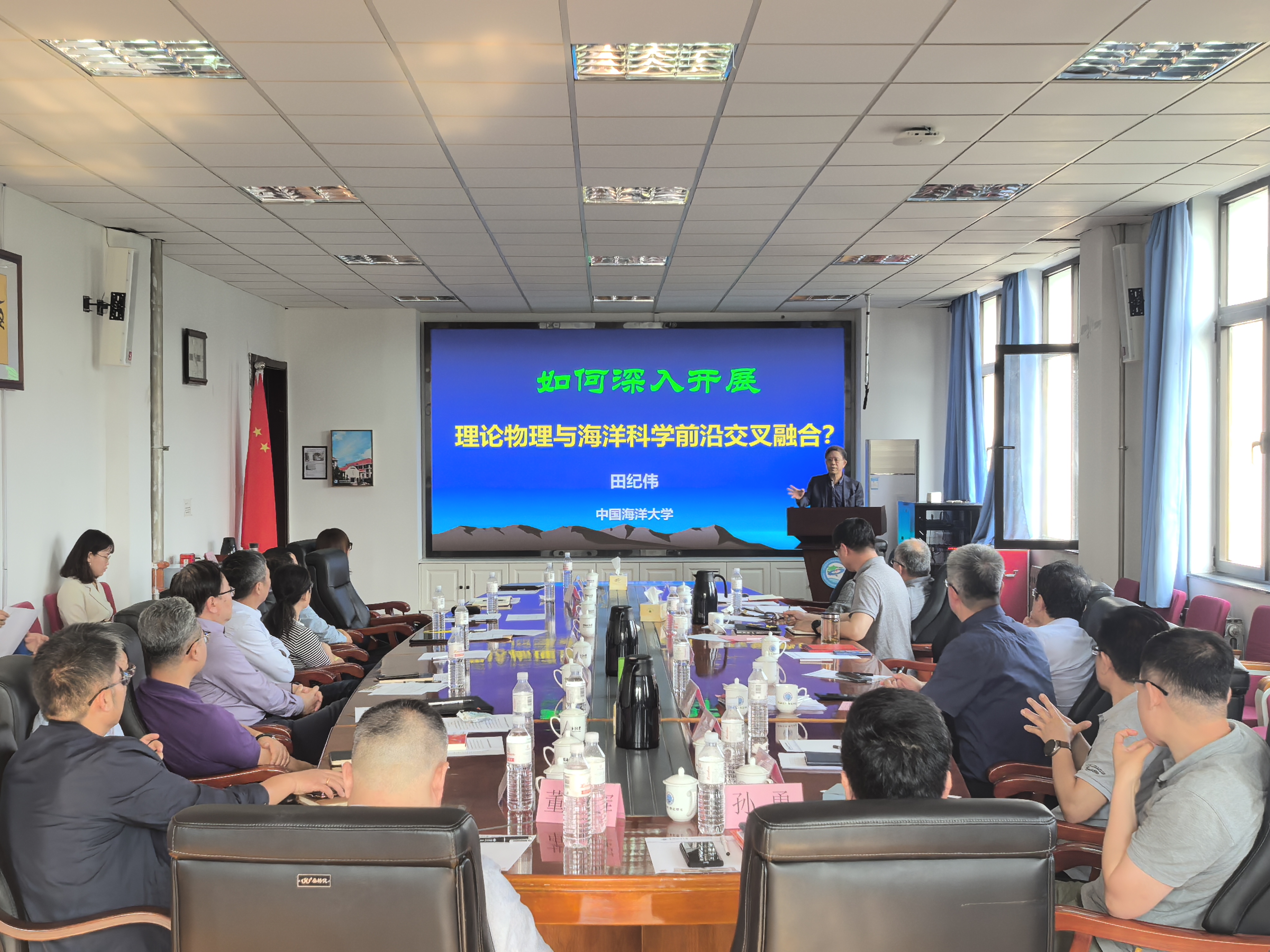 聘任仪式后,田纪伟教授作了题为《如何深入开展理论物理与海洋科学前沿交叉融合》的学术报告。报告高屋建瓴,深刻剖析了当前理论物理与海洋科学前沿交叉领域所蕴藏的巨大潜力和面临的挑战。学部与会人员围绕海洋装备制造、AI+海洋等方面与田纪伟教授开展深入交流与讨论。