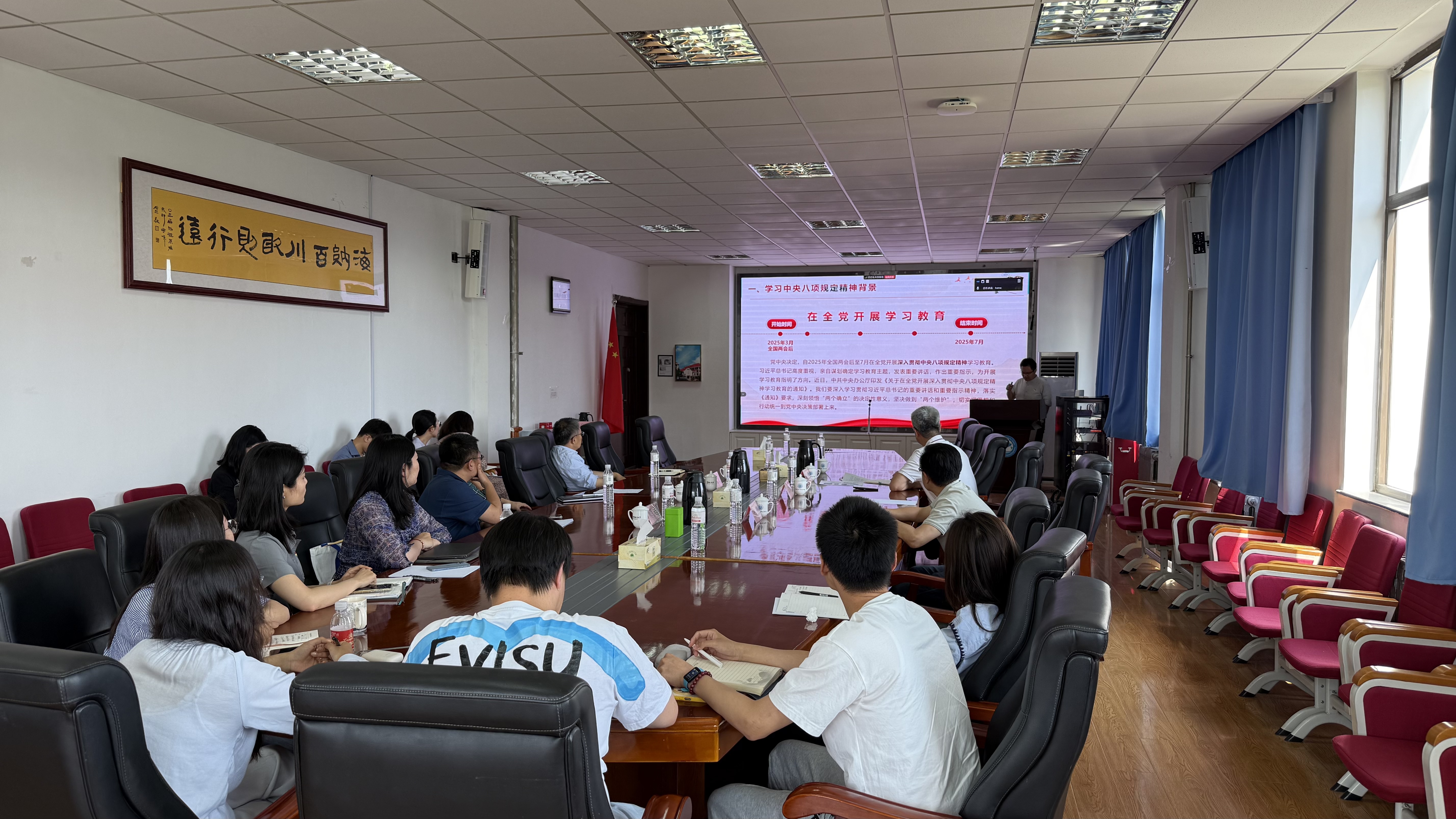 杨晓斌教授以《擦亮全面从严治党的“金色名片”》为题开展了一场内涵深刻、指导性强的辅导报告,他紧密结合当前全面从严治党新形势与新要求,系统阐释了学习中央八项规定精神的时代背景,带领与会人员重温中央八项规定精神实质,深入分析新时代党的作风建设。通过剖析典型案例,深刻揭示了“四风”问题的顽固性、隐蔽性及现实危害,警示党员干部必须时刻保持警醒。杨晓斌教授强调,要跳出治乱兴衰的历史周期率,有效避免所谓“中等收入陷阱”“修昔底德陷阱”“塔西佗陷阱”三大陷阱,关键在于提升中国共产党的领导力,而加强作风建设,正是其切入点和重要抓手。学部党委书记张永胜强调,党员干部必须自觉将中央八项规定精神内化为价值追求与行为准则,以更高标准、更严要求约束言行,在履职尽责中展现优良作风与使命担当。