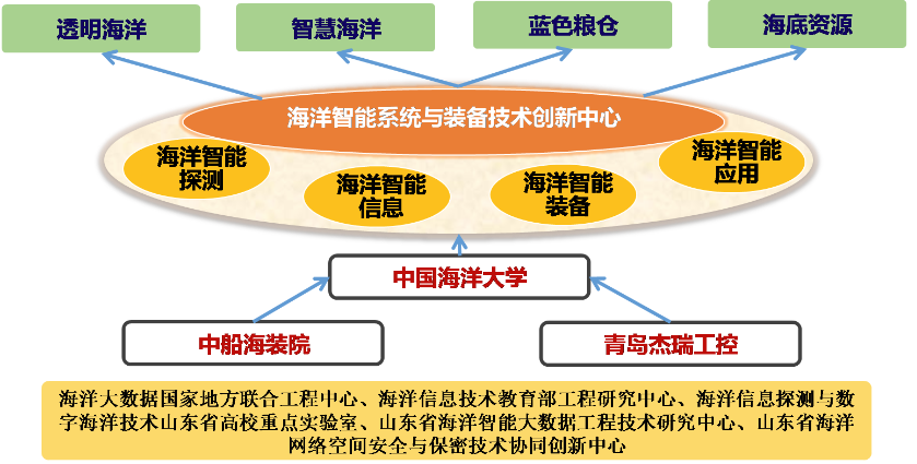 "Shandong Province Marine Intelligent System and Equipment Technology Innovation Center" (hereinafter referred to as the "Innovation Center") was approved for establishment by the Shandong Provincial Department of Science and Technology in January 2021. The Innovation Center is based on the School of Information Science and Engineering of Ocean University of China, and is jointly integrated with CSIC Ocean Equipment Research Institute and Qingdao Jerry Industrial Control Technology Co., Ltd. It integrates the strengths of eight provincial and ministerial-level engineering centers and laboratories, including the National-Local Joint Engineering Research Center for Marine Big Data, the Ministry of Education Engineering Research Center for Marine Information Technology, and the Key Laboratory of Marine Information Detection and Digital Ocean Technology in Shandong Province. With a focus on four key research directions: marine intelligent detection, marine intelligent information, marine intelligent equipment, and intelligent marine applications, the Innovation Center will fully leverage its strengths in basic research, technological innovation, talent cultivation, scientific research investment, and industrialization to promote major scientific and technological achievements in marine science research, marine detection technology R&D, marine information technology development, marine environmental monitoring, marine resource protection, marine engineering technology development, and related fields. The main research directions of the Innovation Center include: